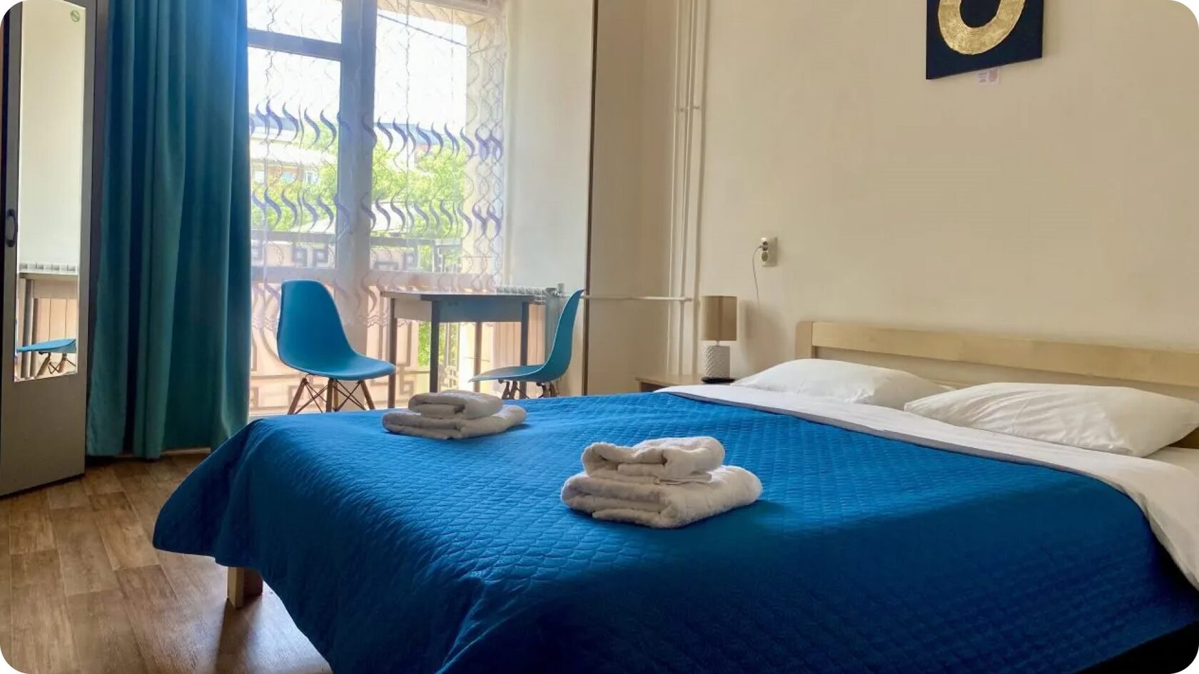 В отеле — 28 номеров с эргономичным стильным интерьером и французскими балконами, ортопедическими матрасами и блэкаут-шторами. Доступны разные категории размещения: от одноместного стандарта до апартаментов с кухней-гостиной на 4 человек.