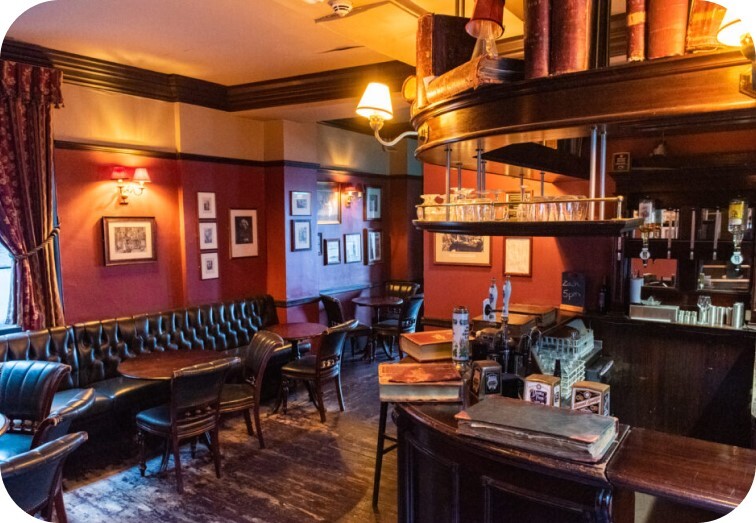 На протяжении многих лет завсегдатаями этого места были такие литературные легенды, как Чарльз Диккенс, Марк Твен и доктор Сэмюэл Джонсон. Сегодня здесь — в непритязательной обстановке, словно застывшей во времени — по-прежнему подают традиционные британские блюда: пироги, жаркое и сваренный в Йоркшире эль Samuel Smith.