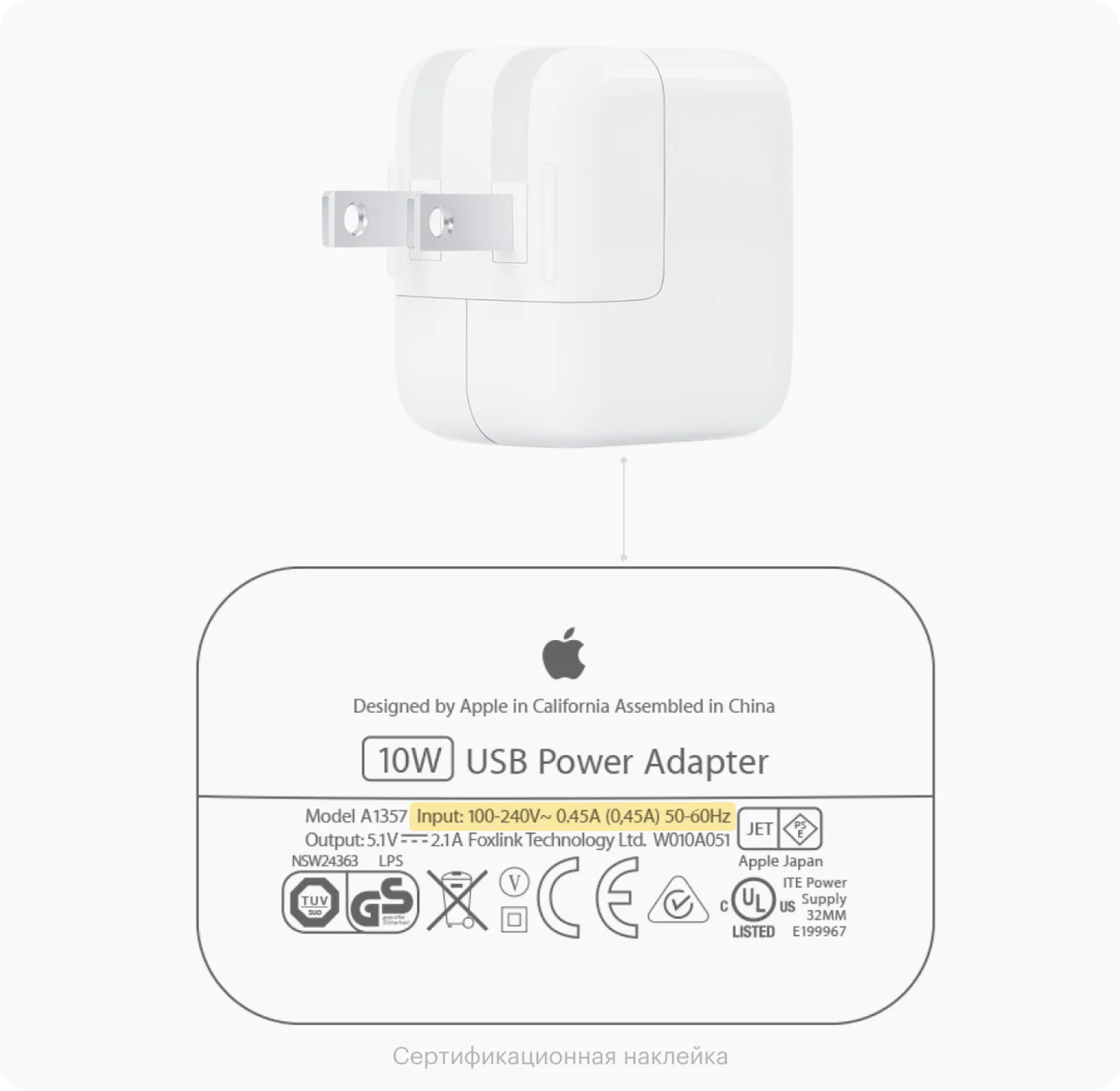 - 100–127 V, 60 Hz — на «американскую».